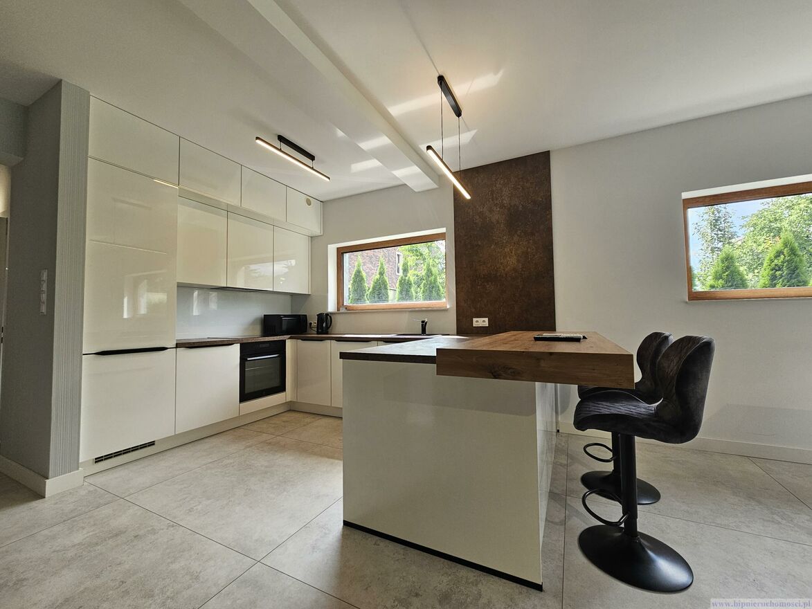 Kuchnia w pełni umeblowana i wyposażona w wysokiej klasy sprzęt AGD. Na podłodze gresy i wysokiej jakości panele.(ogrzewanie podłogowe)