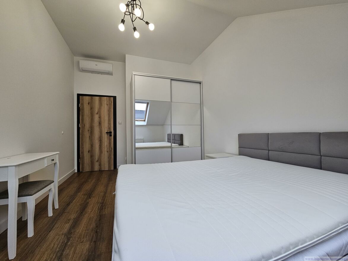 Pokoje o pow. 15m2, 14m2, 12m2, 12m2. Wszystkie sypialnie klimatyzowane i umeblowane w łóżka, szafy,biurka etc. W łazienkach ogrzewanie podłogowe.