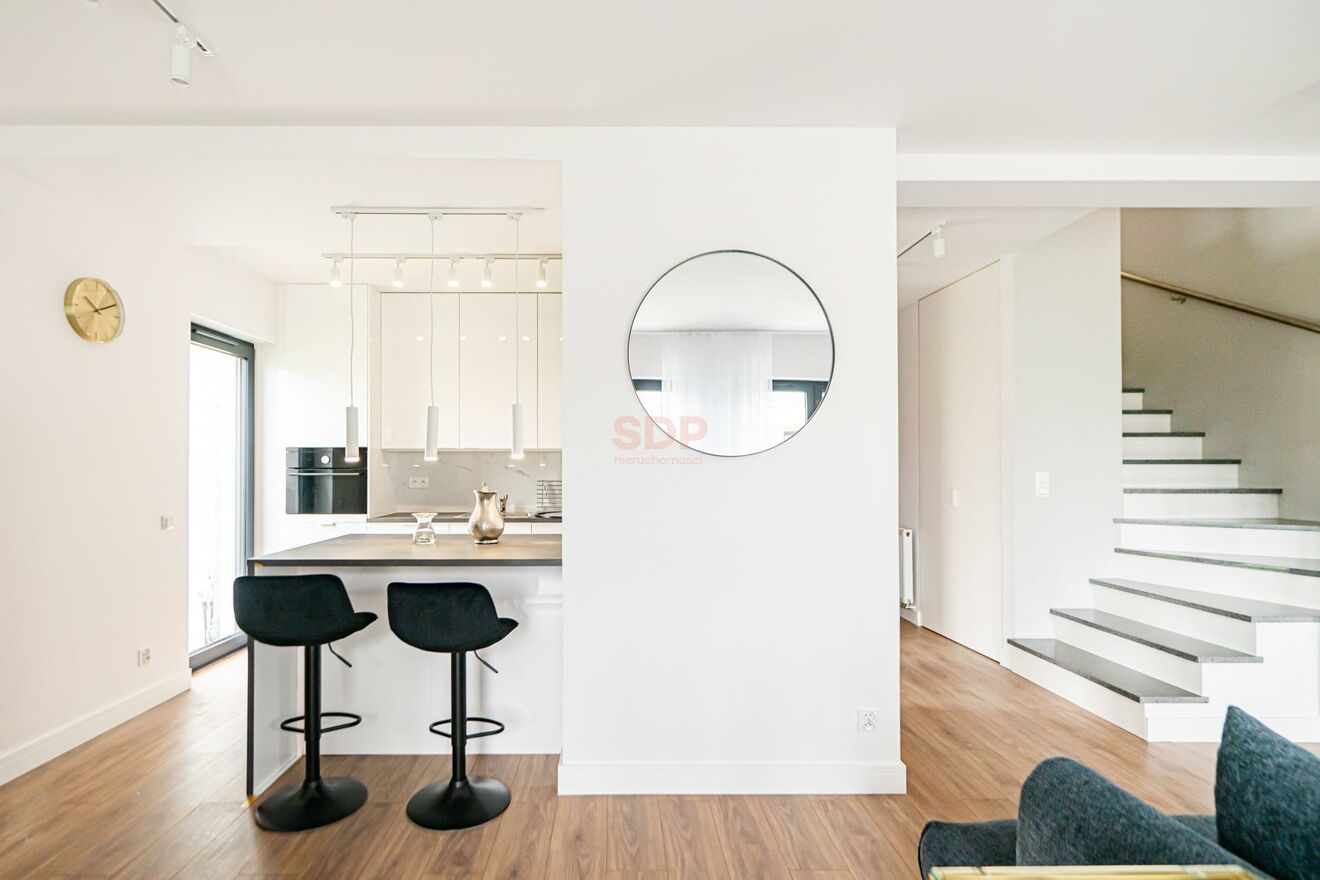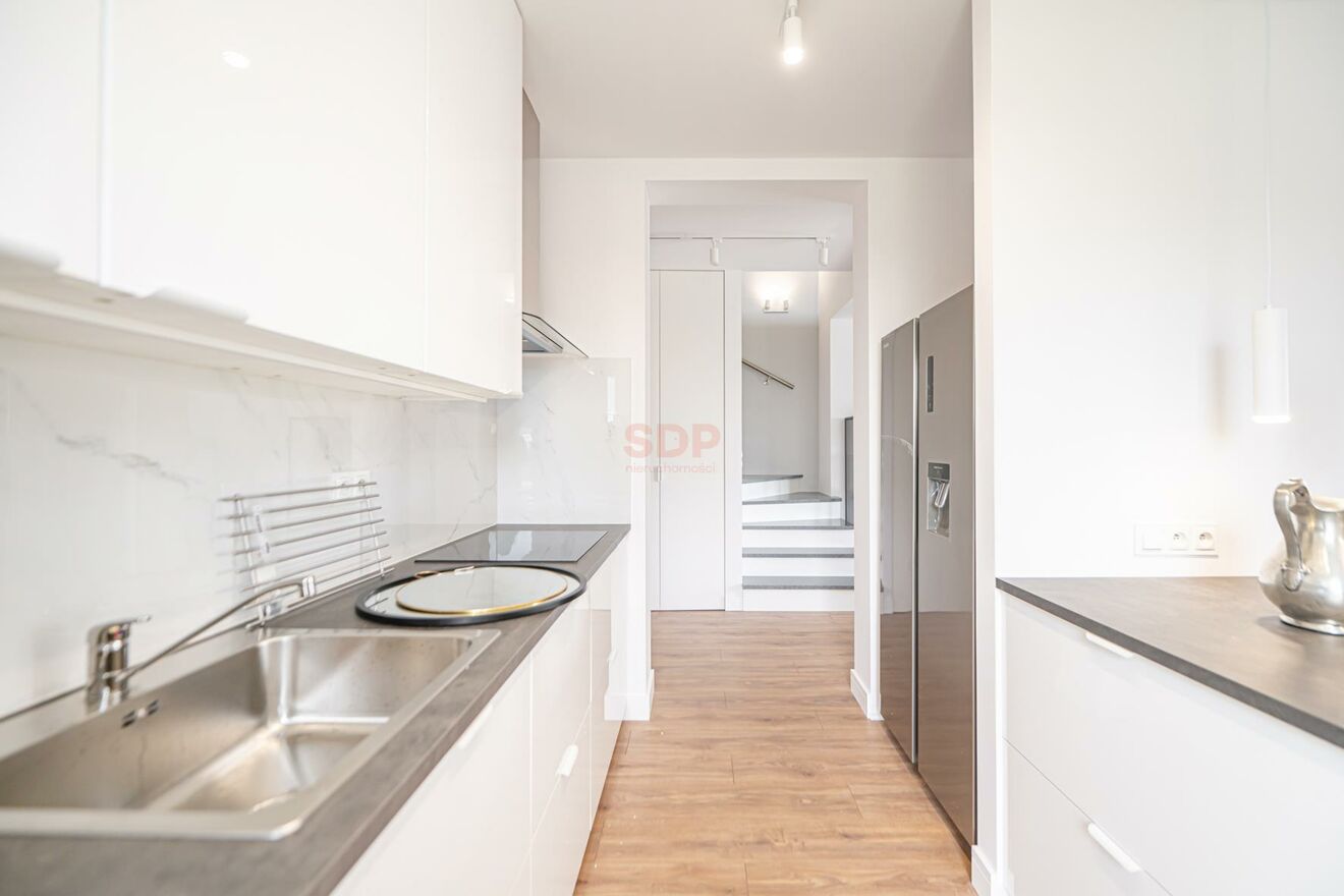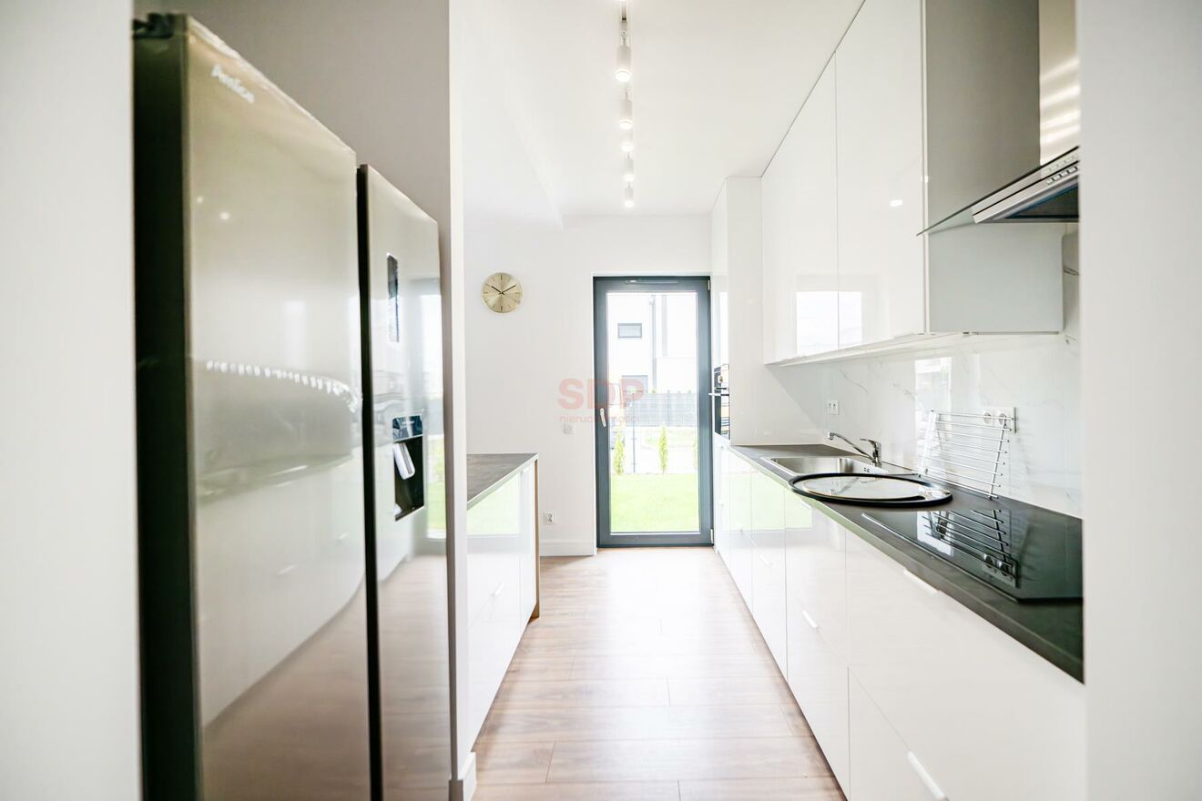 I would like to recommend for rent a two-level house in the village of Bielany Wrocławskie. The village is located 5 minutes from Wroclaw. This is a terraced property located in a quiet neighborhood, the house is surrounded by green areas. The two-story house with a floor area of 140 m2. In front of the house there is a driveway with two parking space and an entrance to the garage in the body of the building.
