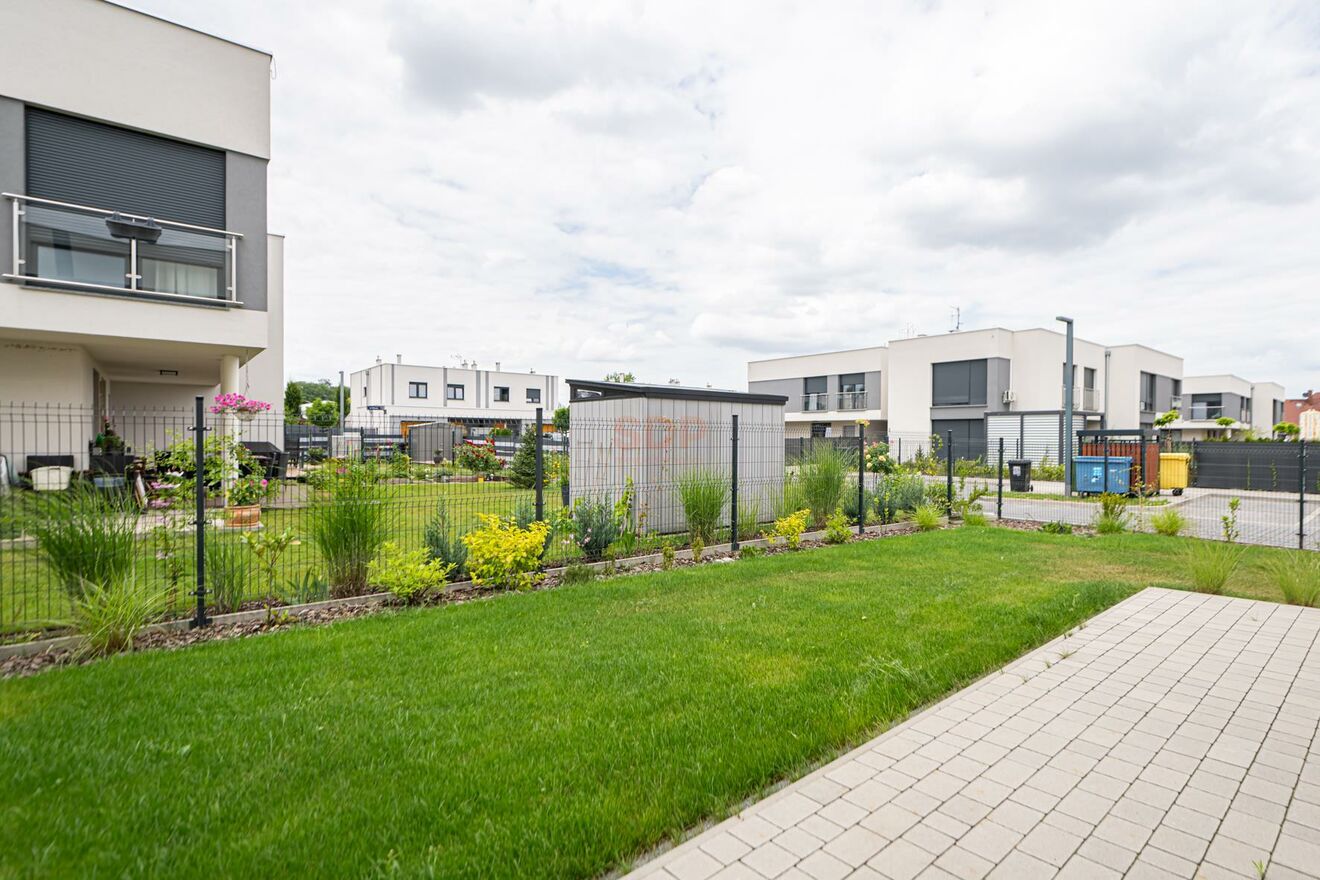 The terraced house is located on a quiet residential street in Bielany Wrocławskie. A great advantage of this location is the proximity to the A4 highway and the Wrocław bypass A8.
